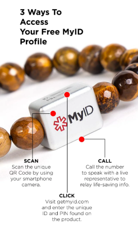 We can help you with that. We are affiliated with the MyID company and have beads with QR codes (black or silver) that can access your medical information from the free app MyID provides.